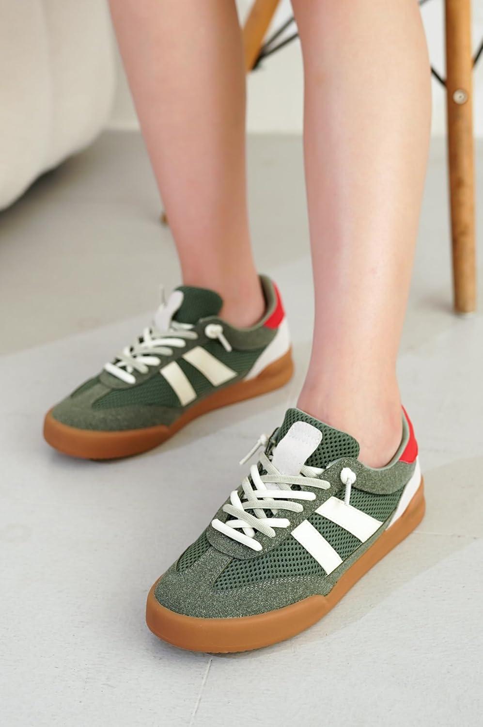 Project Cloud Genuine Leather Casual Sneakers for Women - Memory Foam Insoles Lace-Up Womens Shoes & Lightweight Women's Fashion Sneakers - Non-Slip Shoes for Women Footwear (Verdy)(Olive)