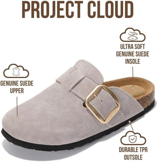 imageProject Cloud Genuine Leather Clogs for Women Shoes  Memory Foam Insole NonSlip ampamp Natural Cork Footbed Arch Support Big Buckle Womens Clogs and Mules for Women Footwear ManchesterGrey