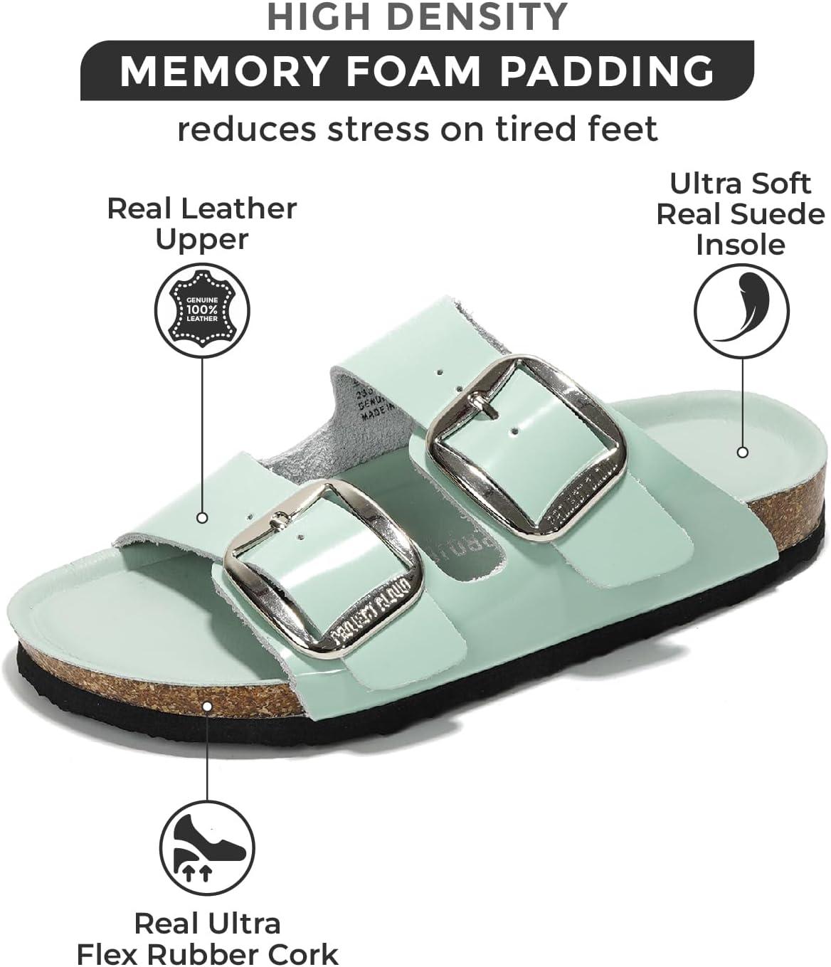 Project Cloud Genuine Leather Flat Sandals for Women 2025 Comfortable Beach Essentials Womens Sandals Memory Foam Vacation Essentials Slides for Women Footwear (Santorini)(Pistachio)