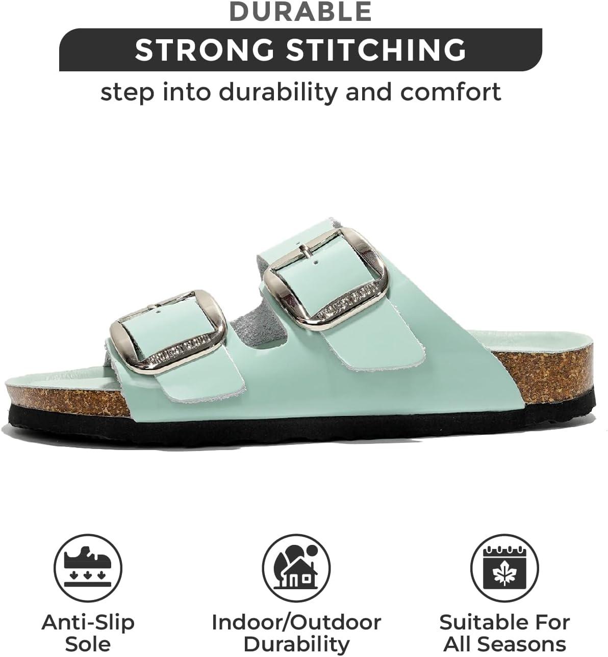 Don’t miss out on our limited-time offer: buy Project Cloud Genuine Leather Flat Sandals for Women 2025 Comfortable Beach Essentials Womens Sandals Memory Foam Vacation Essentials Slides for Women Footwear (Santorini)(Blue Patent), get {accessory} free!