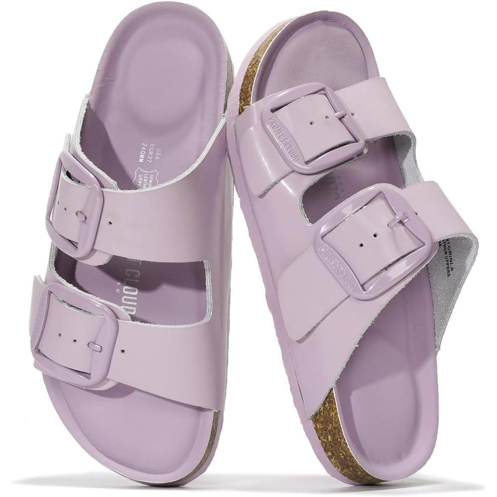 Get up to 50% off on Project Cloud Genuine Leather Flat Sandals for Women 2025 Comfortable Beach Essentials Womens Sandals Memory Foam Vacation Essentials Slides for Women Footwear (Santorini)(Purple) styles during our spring sale event.