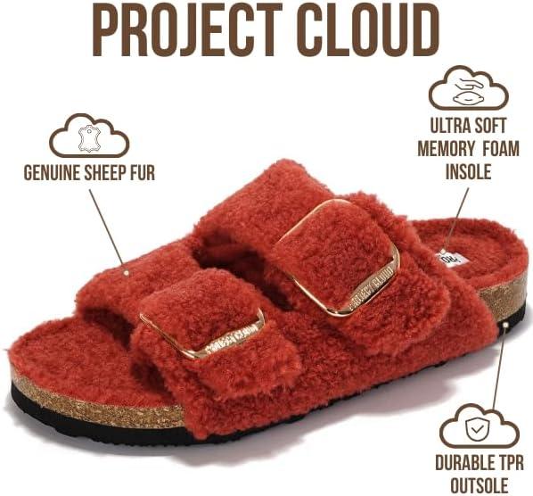 Project Cloud Genuine Leather Flat Sandals for Women 2025 Comfortable Beach Essentials Womens Sandals Memory Foam Vacation Essentials Slides for Women Footwear (Santorini)(Red)