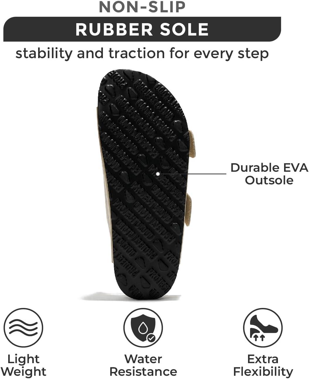 Project Cloud Genuine Leather Flat Sandals for Women 2025 Comfortable Beach Essentials Womens Sandals Memory Foam Vacation Essentials Slides for Women Footwear (Santorini)(Black Matte)