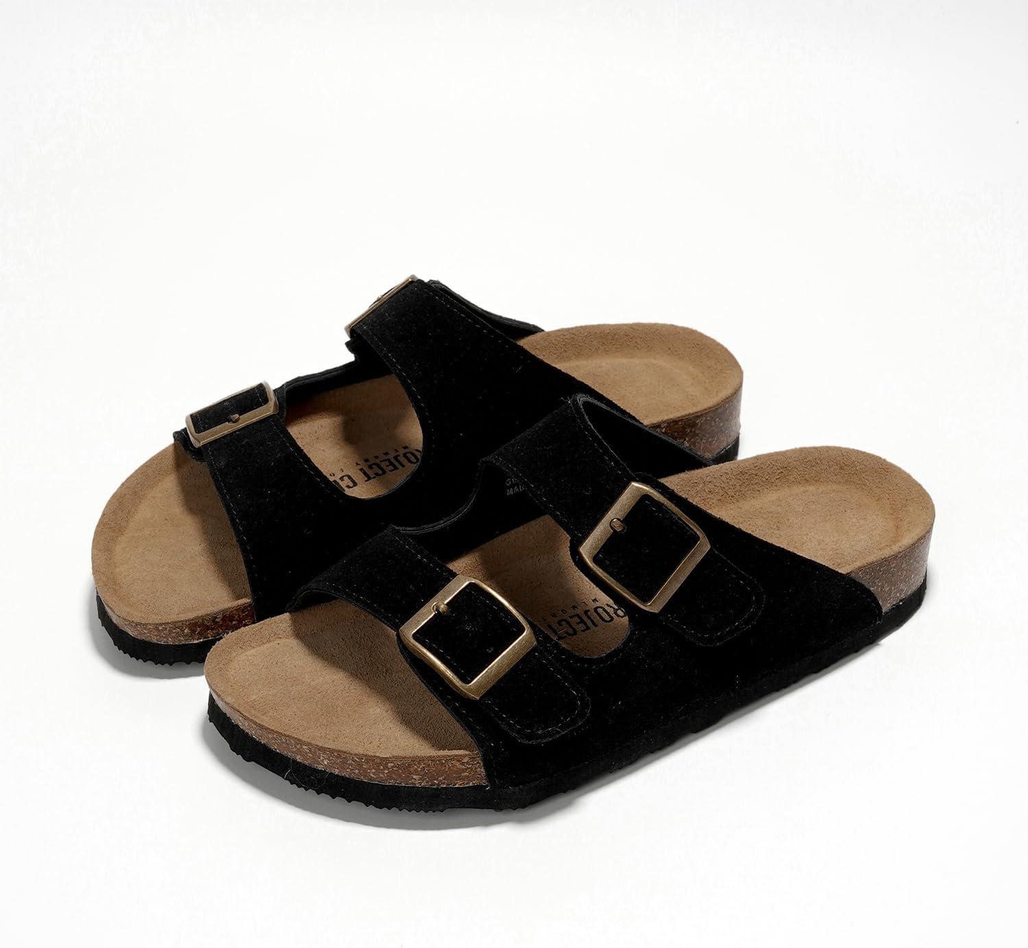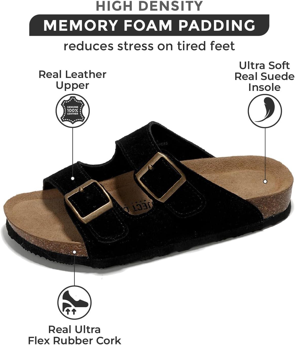 Project Cloud Genuine Leather Flat Sandals Women 2025 Beach Essentials Womens Sandals Memory Foam Vacation Essentials Slides for Women Footwear (Venita)(Black Suede)