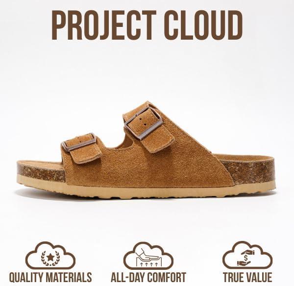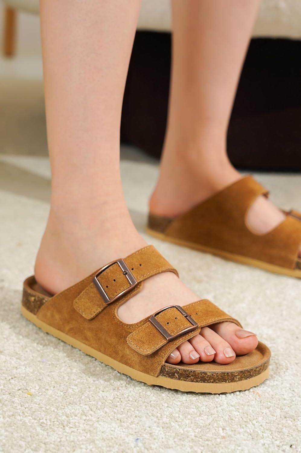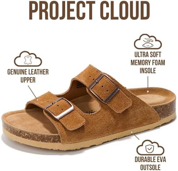 Project Cloud Genuine Leather Flat Sandals Women 2025 Beach Essentials Womens Sandals Memory Foam Vacation Essentials Slides for Women Footwear (Venita)(Camel)
