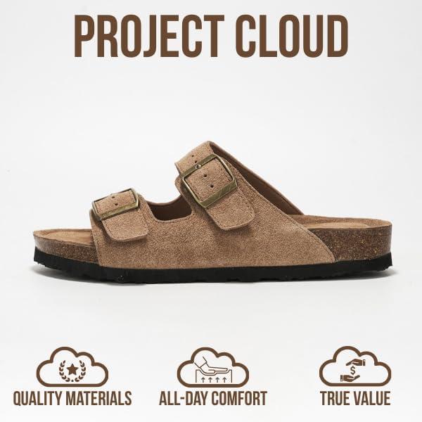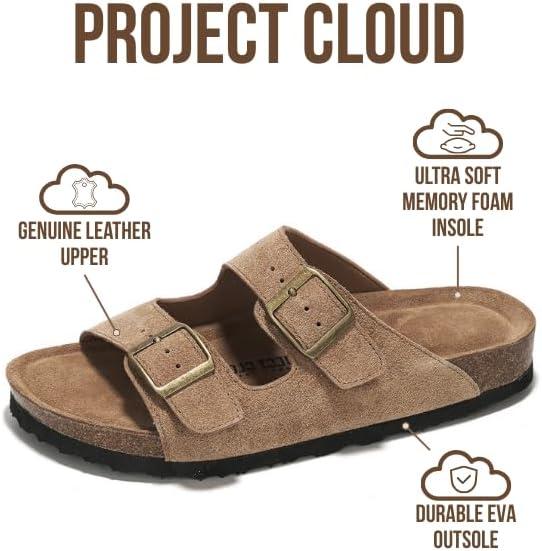 Project Cloud Genuine Leather Flat Sandals Women 2025 Beach Essentials Womens Sandals Memory Foam Vacation Essentials Slides for Women Footwear (Venita)(Grey Suede)