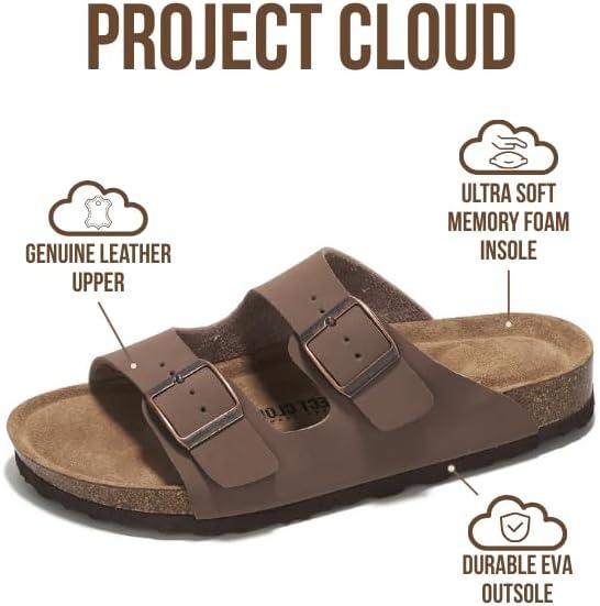 Project Cloud Genuine Leather Flat Sandals Women 2025 Beach Essentials Womens Sandals Memory Foam Vacation Essentials Slides for Women Footwear (Venita)(Grey Suede)
