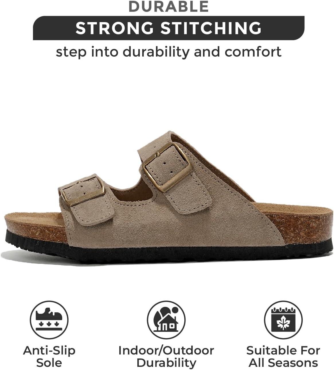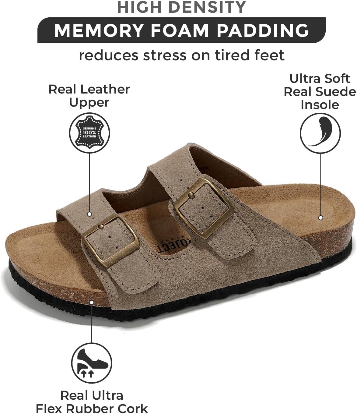 Project Cloud Genuine Leather Flat Sandals Women 2025 Beach Essentials Womens Sandals Memory Foam Vacation Essentials Slides for Women Footwear (Venita)(Taupe Suede)