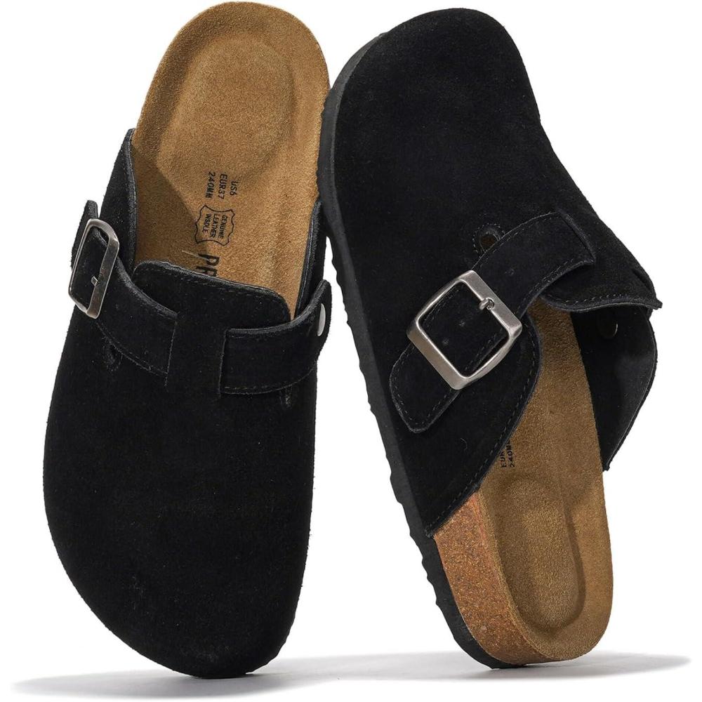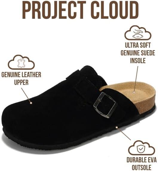 Project Cloud Genuine Leather Footbed Clogs for Women - Memory Foam Arch Support Slippers for Women - Trendy Slip-ons Women's Mules & Clogs Sandals (Benton)(Black Suede)