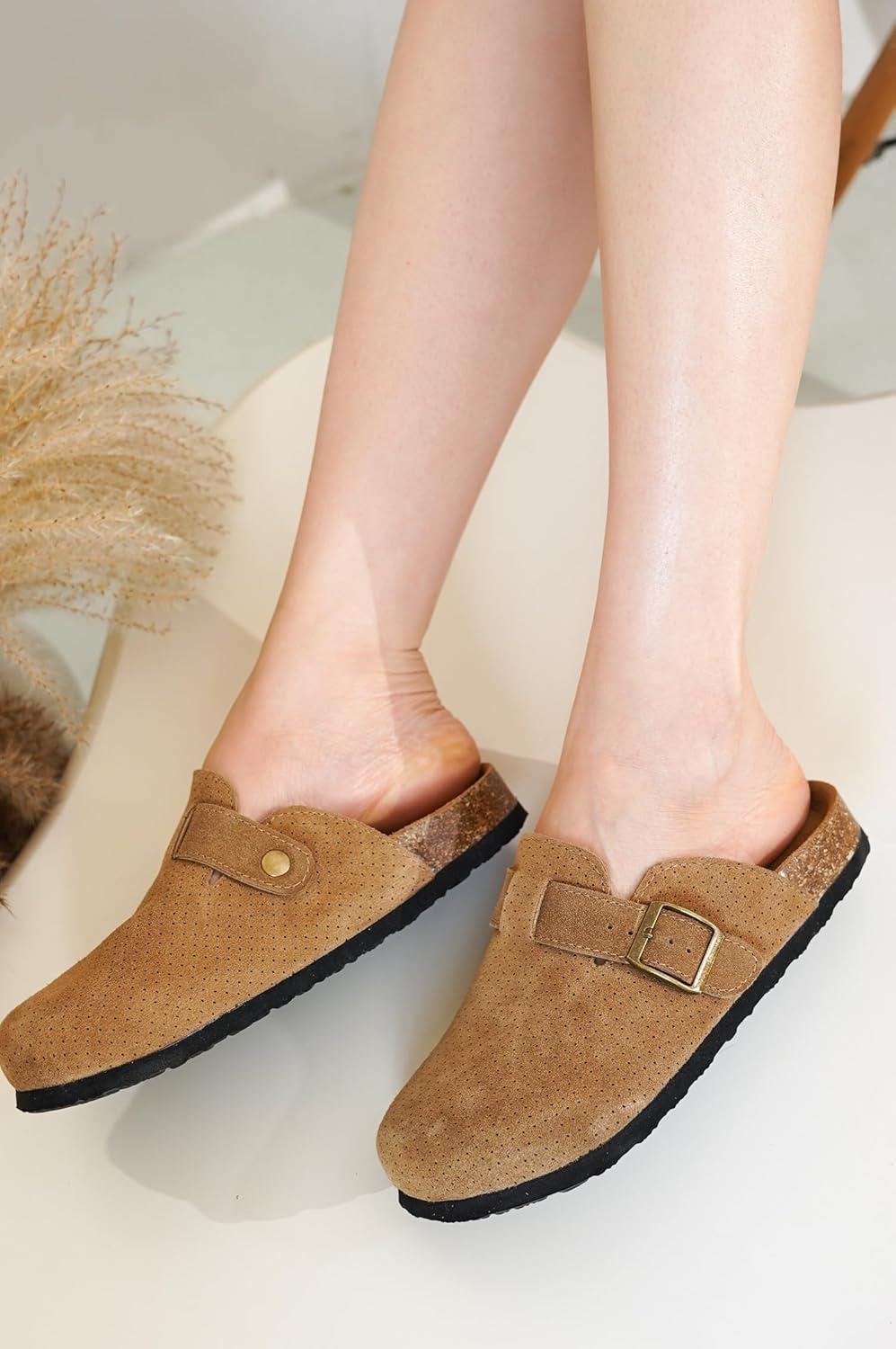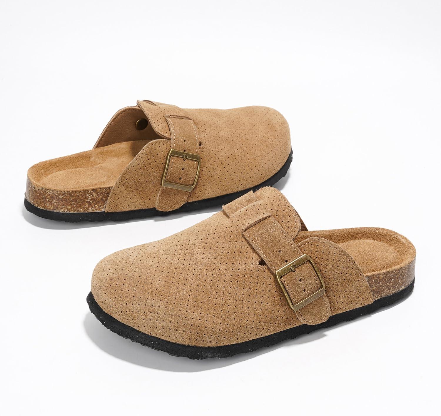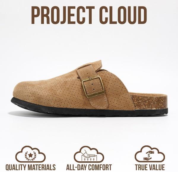 Project Cloud Genuine Leather Footbed Clogs for Women - Memory Foam Arch Support Slippers for Women - Trendy Slip-ons Women's Mules & Clogs Sandals (Benton)(Chestnut Perforated)