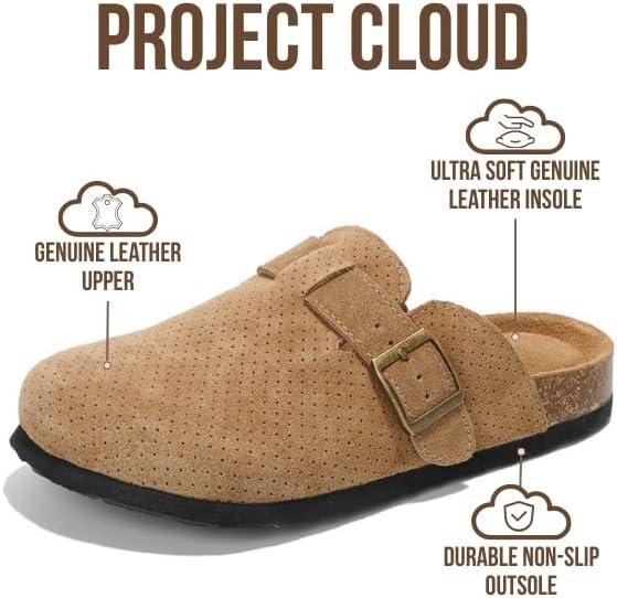 Project Cloud Genuine Leather Footbed Clogs for Women – Memory Foam Arch Support Slippers for Women – Trendy Slip-ons Women’s Mules & Clogs Sandals (Benton)(Chestnut Perforated)