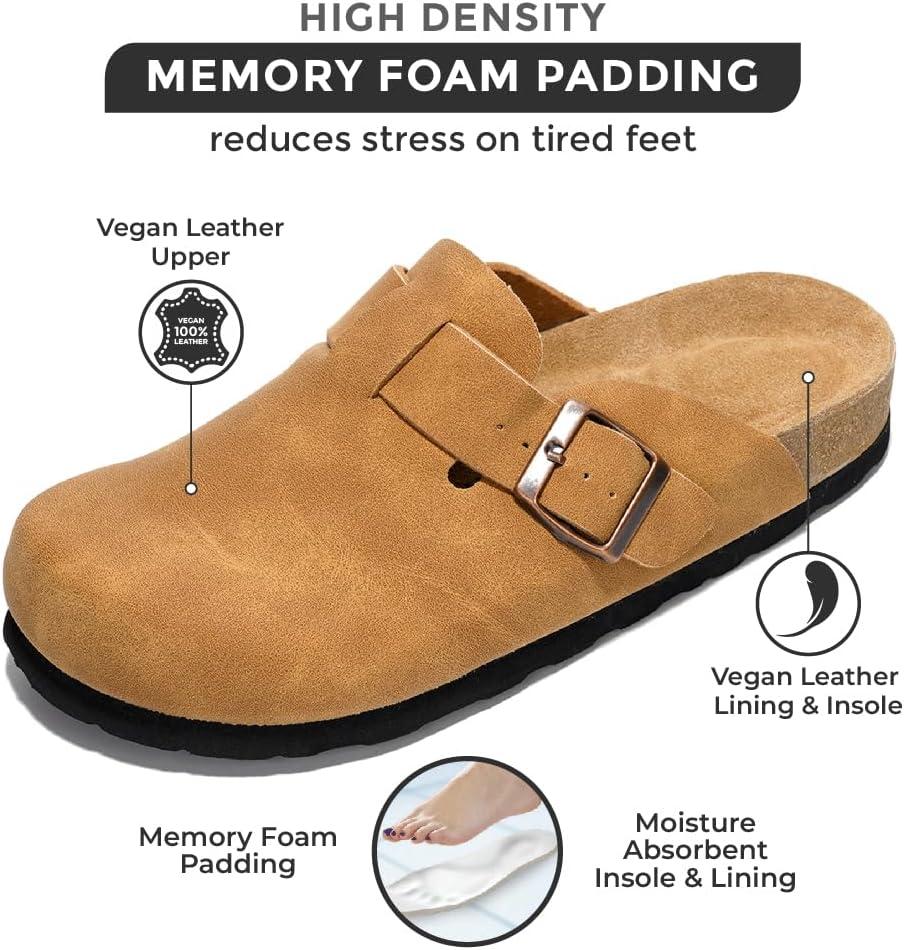 Project Cloud Genuine Leather Footbed Clogs for Women - Memory Foam Arch Support Slippers for Women - Trendy Slip-ons Women's Mules & Clogs Sandals (Benton)(Chestnut)