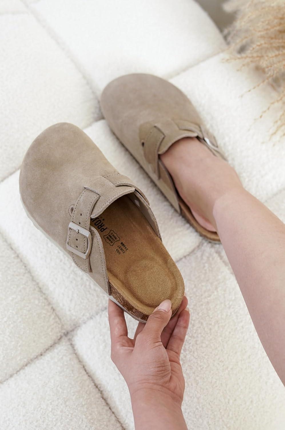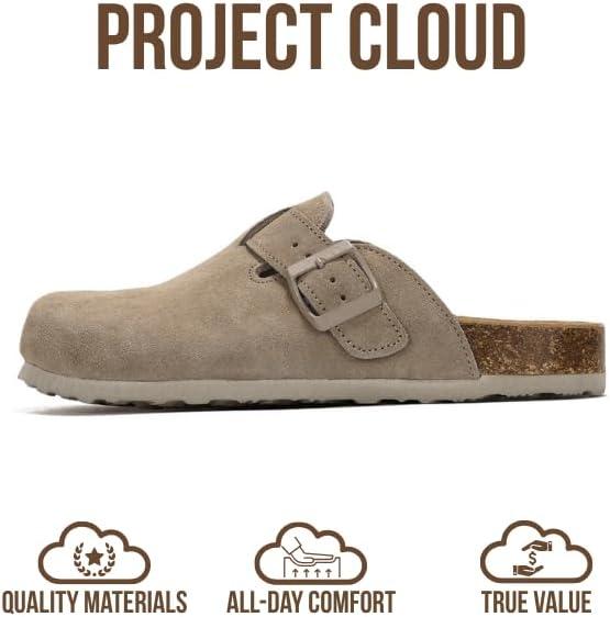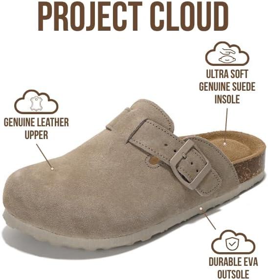 Project Cloud Genuine Leather Footbed Clogs for Women – Memory Foam Arch Support Slippers for Women – Trendy Slip-ons Women’s Mules & Clogs Sandals (Benton)(Grey Suede)