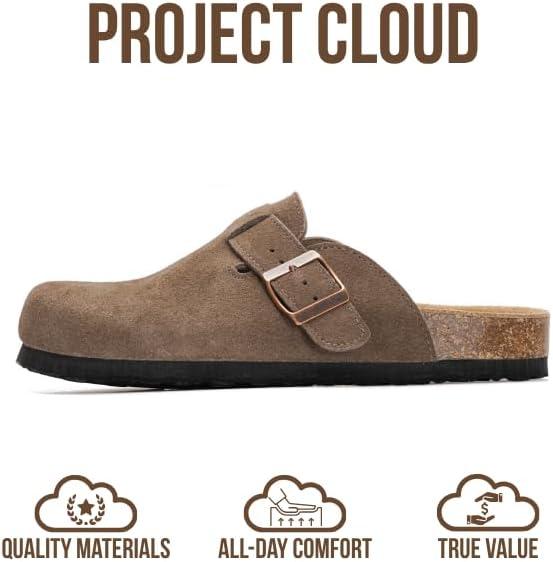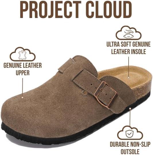 Project Cloud Genuine Leather Footbed Clogs for Women - Memory Foam Arch Support Slippers for Women - Trendy Slip-ons Women's Mules & Clogs Sandals (Benton)(Fossil Suede)