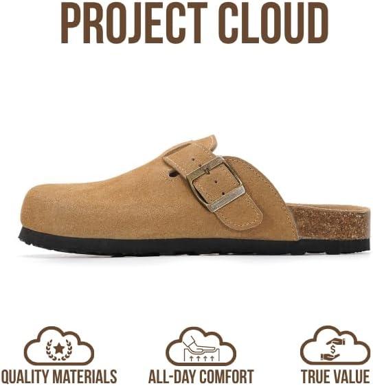Project Cloud Genuine Leather Footbed Clogs for Women – Memory Foam Arch Support Slippers for Women – Trendy Slip-ons Women’s Mules & Clogs Sandals (Benton)(Choco Brown Suede)