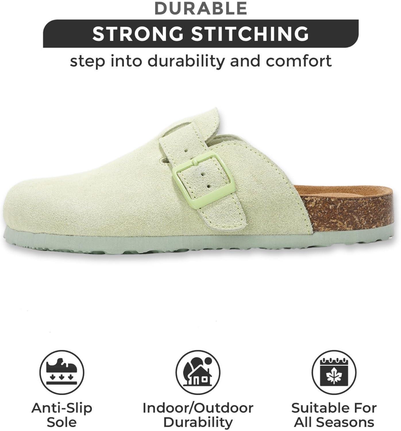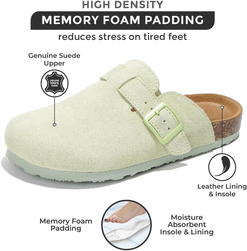 Project Cloud Genuine Leather Footbed Clogs for Women - Memory Foam Arch Support Slippers for Women - Trendy Slip-ons Women's Mules & Clogs Sandals (Benton)(Sage Suede)