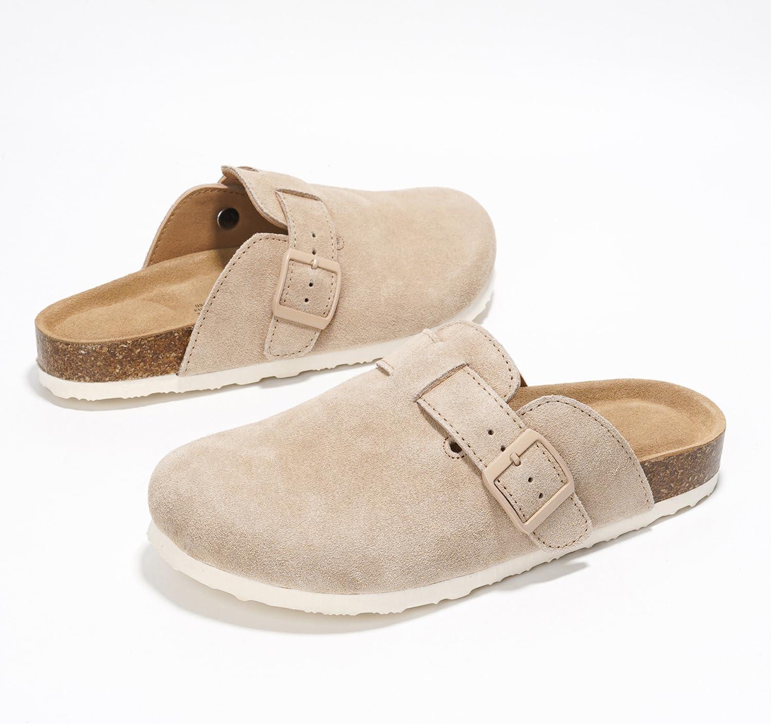 Project Cloud Genuine Leather Footbed Clogs for Women - Memory Foam Arch Support Slippers for Women - Trendy Slip-ons Women's Mules & Clogs Sandals (Benton)(Sand Suede)