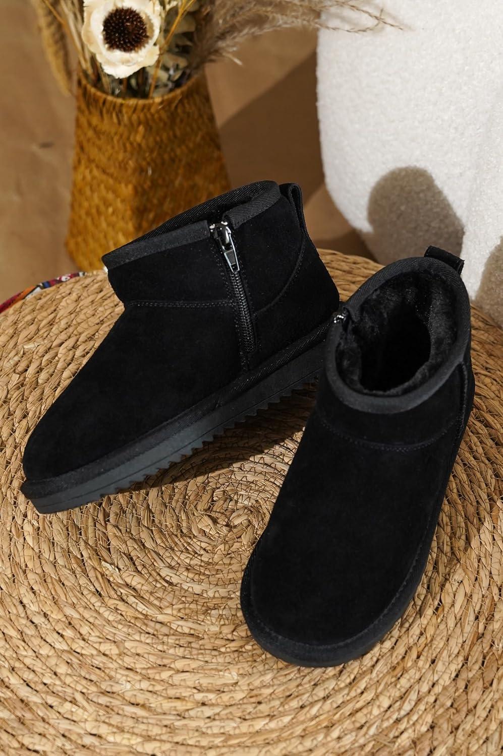 Project Cloud Genuine Leather Womens Boots – Natural Fur Lined Ankle Boots for Women with Memory Foam Insole – Comfortable Booties for Women Footwear (Timmy)(Black)