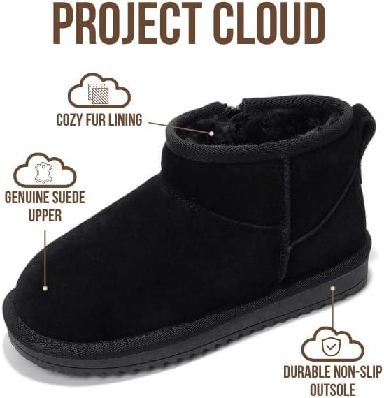 imageProject Cloud Genuine Leather Girls Boots  Lightweight ampamp Cozy Fur Ankle Boots with Memory Foam  Non Slip Kids Boots for Girls ampamp Boys Perfect for Fall and Everyday WearBlack