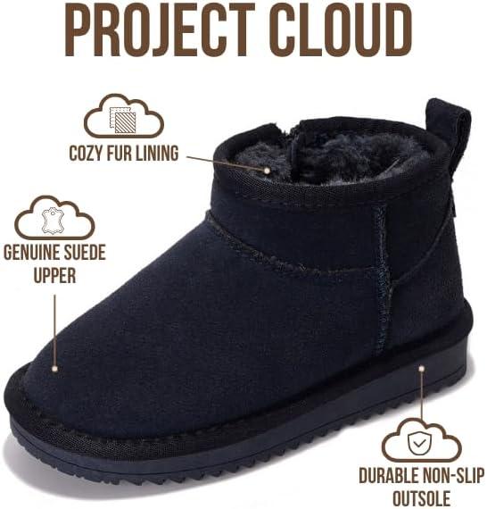 Project Cloud Genuine Leather Girls Boots – Lightweight & Cozy Fur Ankle Boots with Memory Foam – Non Slip Kids Boots for Girls & Boys, Perfect for Fall and Everyday Wear(Navy Suede)