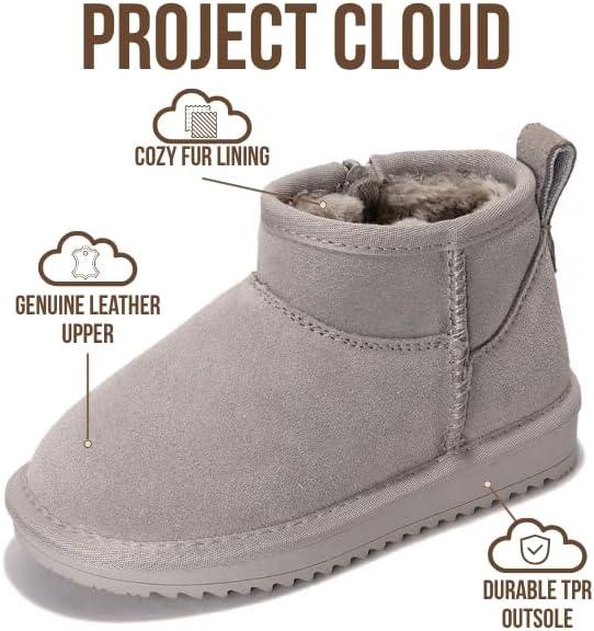 Project Cloud Genuine Leather Girls Boots – Lightweight & Cozy Fur Ankle Boots with Memory Foam – Non Slip Kids Boots for Girls, Perfect for Fall and Everyday Wear(Lightgrey Suede)
