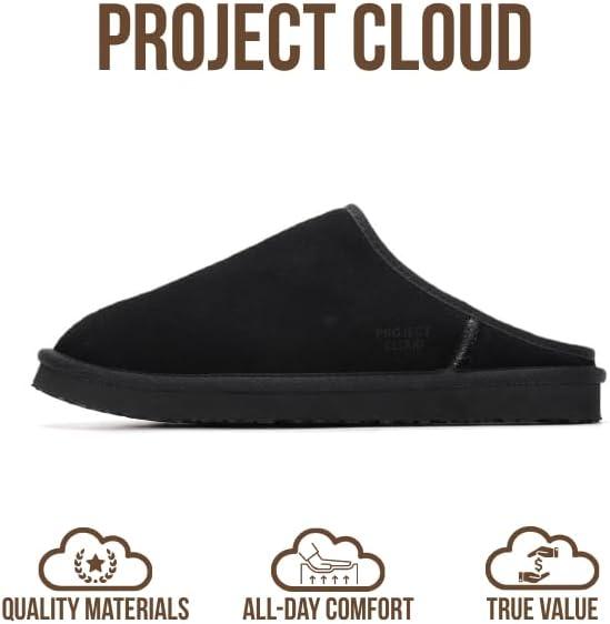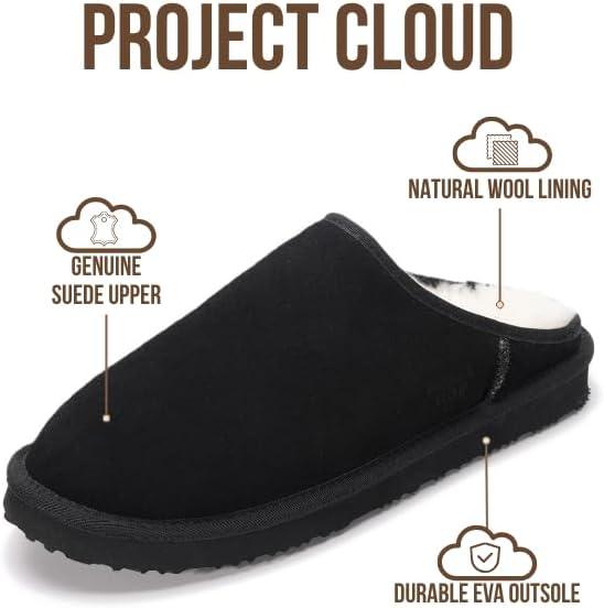 Project Cloud Genuine Leather House Slippers for Men – Genuine Shearling Lining Mens Slippers with Memory Foam Insole – Lightweight & Non Slip Mens House Shoes (Chill)(Black Suede)