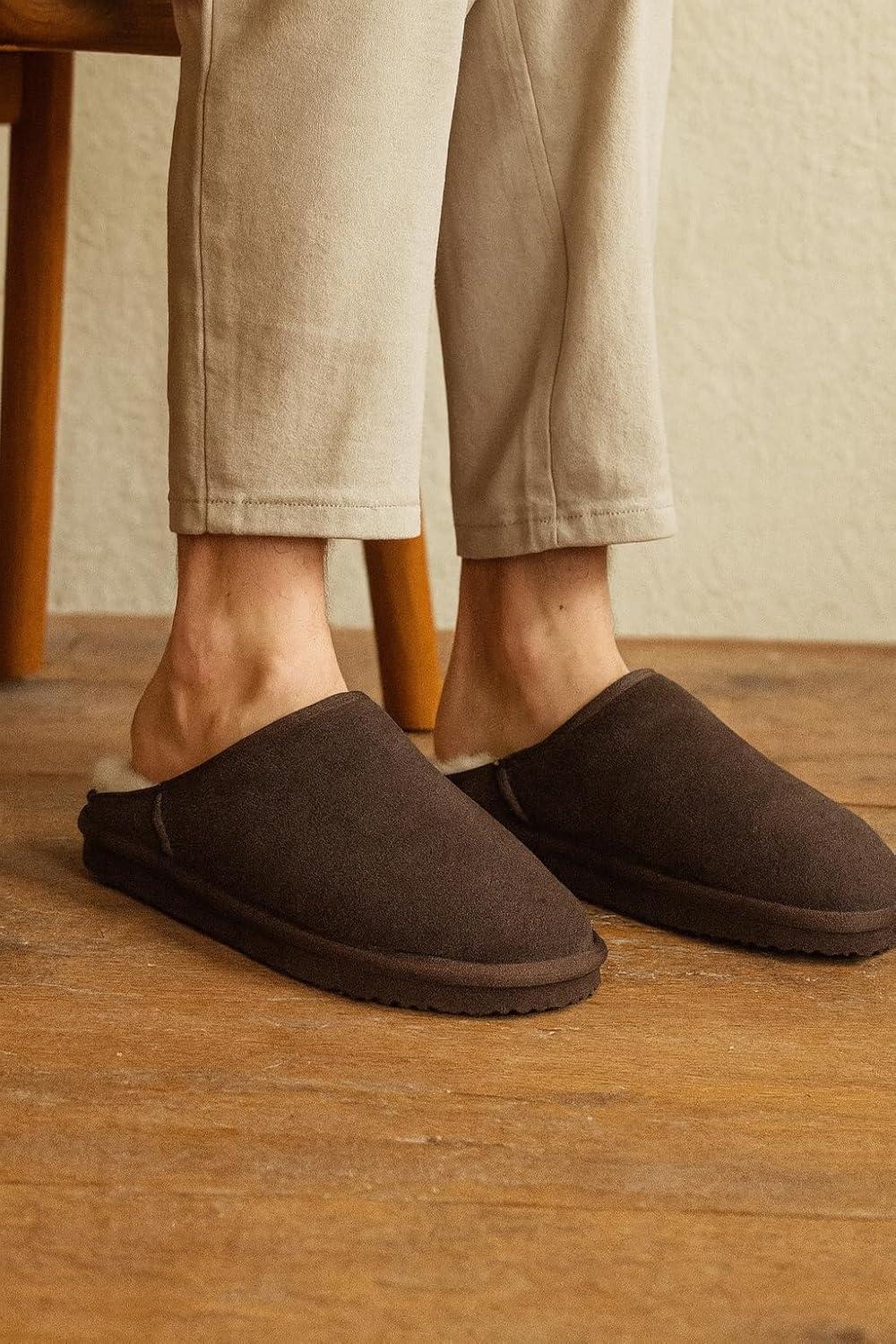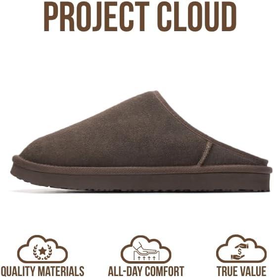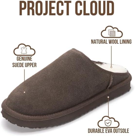 Project Cloud Genuine Leather House Slippers for Men – Genuine Shearling Lining Mens Slippers with Memory Foam Insole – Lightweight & Non Slip Mens House Shoes (Chill)(Choco Brown Suede)