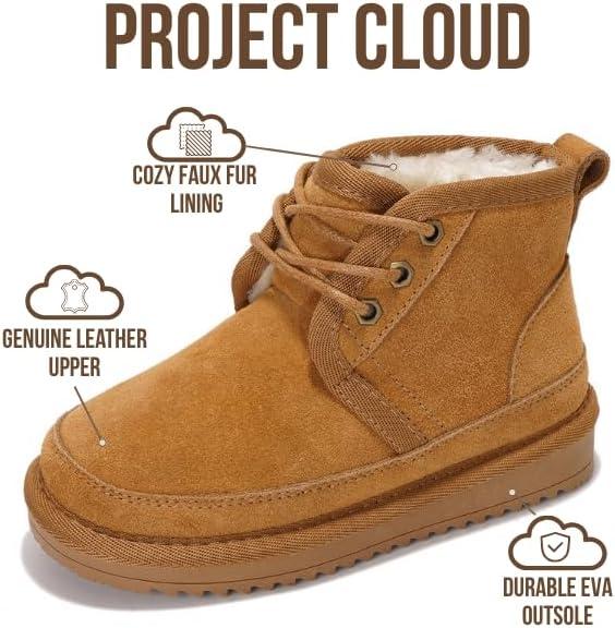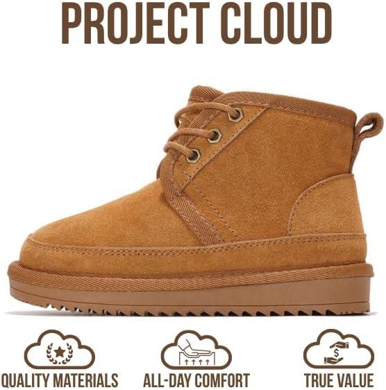 Project Cloud Genuine Leather Kids Boots - Lightweight Fur-Lined Ankle Boots for Girls & Boys with Memory Foam Insole - Non-Slip Winter Kids Shoes (Nevada)(Chestnut Suede)