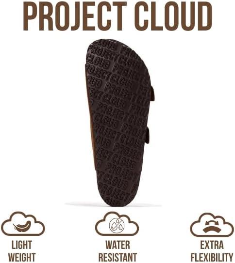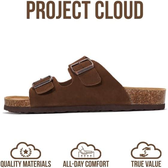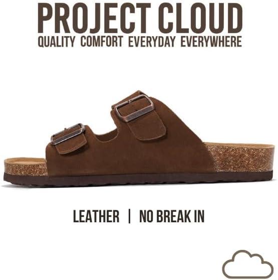 Project Cloud Genuine Leather Mens Sandals with Memory Foam Natural Cork Footbed Slides for Men Footwear - Non-Slip Double-Strap Buckle Summer Sandals (Arizona)(Choco Suede)