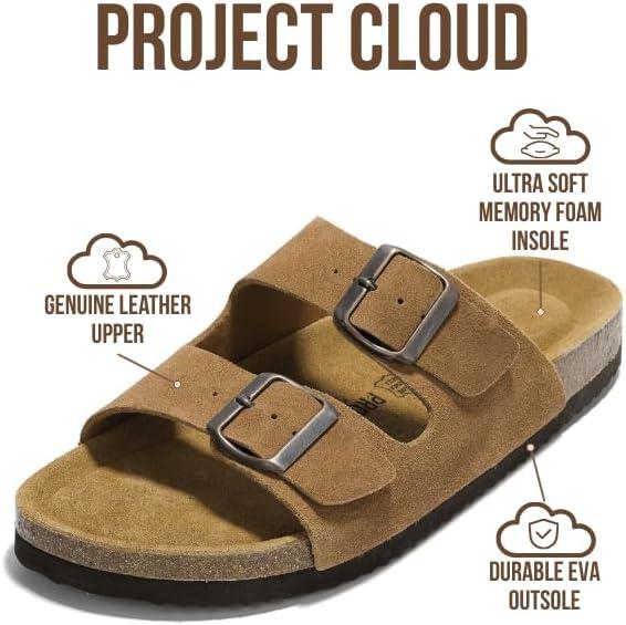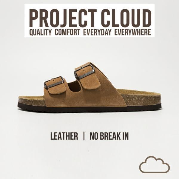 imageProject Cloud Genuine Leather Mens Sandals with Memory Foam Natural Cork Footbed Slides for Men Footwear  NonSlip DoubleStrap Buckle Summer Sandals ArizonaTan Suede