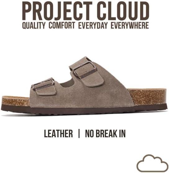 imageProject Cloud Genuine Leather Mens Sandals with Memory Foam Natural Cork Footbed Slides for Men Footwear  NonSlip DoubleStrap Buckle Summer Sandals ArizonaChoco Suede