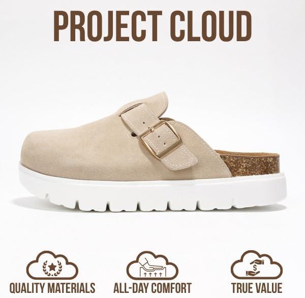 Project Cloud Genuine Leather Platform Clogs for Women Footwear – Memory Foam Arch Support Cork Footbed Casual Shoes & Mules for Women 2025 (Benton Chunky)(Foss Suede)