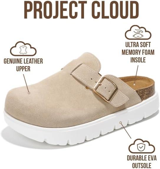 imageProject Cloud Genuine Leather Platform Clogs for Women Footwear  Memory Foam Arch Support Cork Footbed Casual Shoes ampamp Mules for Women 2025 Benton ChunkyFoss Suede