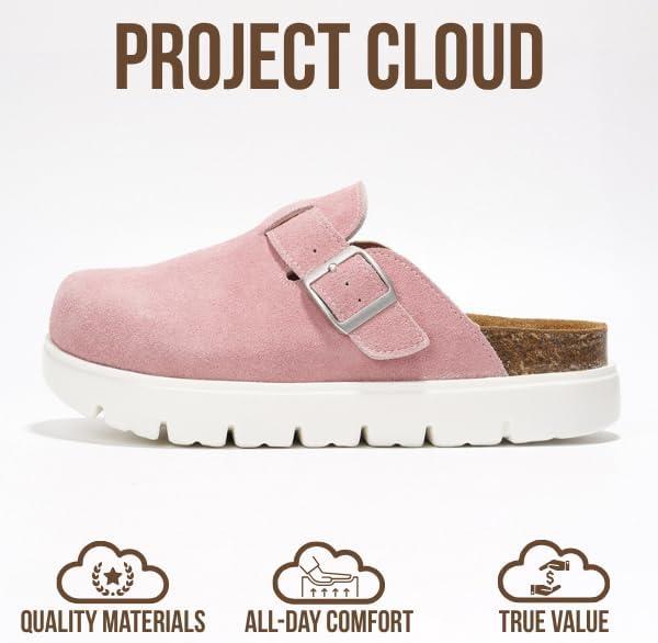 Project Cloud Genuine Leather Platform Clogs for Women Footwear – Memory Foam Arch Support Cork Footbed Casual Shoes & Mules for Women 2025 (Benton Chunky)(Foss Suede)
