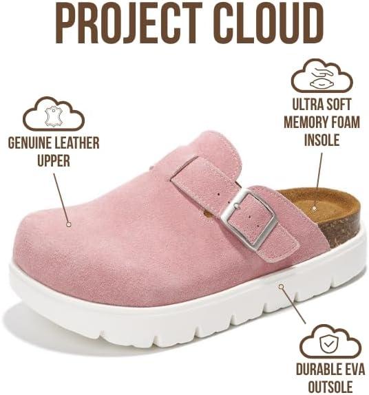 imageProject Cloud Genuine Leather Platform Clogs for Women Footwear  Memory Foam Arch Support Cork Footbed Casual Shoes ampamp Mules for Women 2025 Benton ChunkyFoss Suede