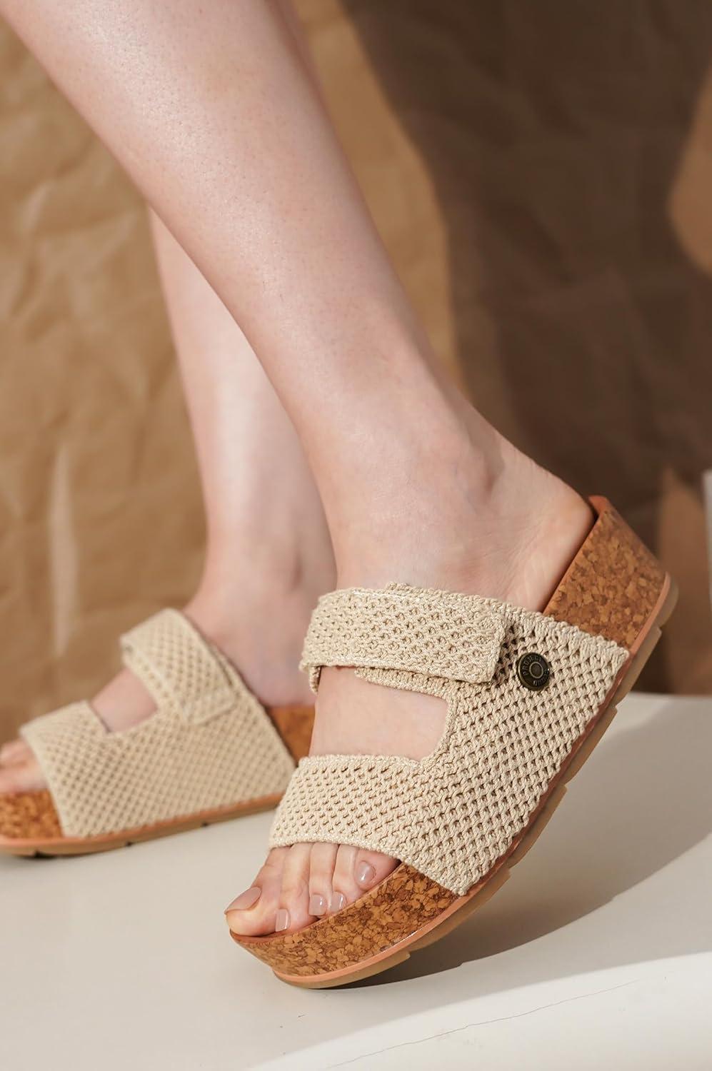 Project Cloud Genuine Leather Platform Sandals Women Footwear - Beach Summer Wedges with Comfortable Memory Foam Insole - Non Slip & Lightweight Wedge Sandals for Women(Natural Crochet)