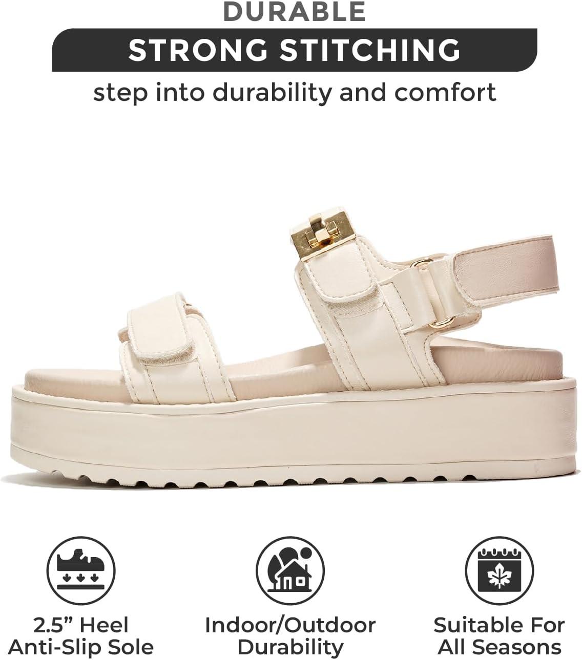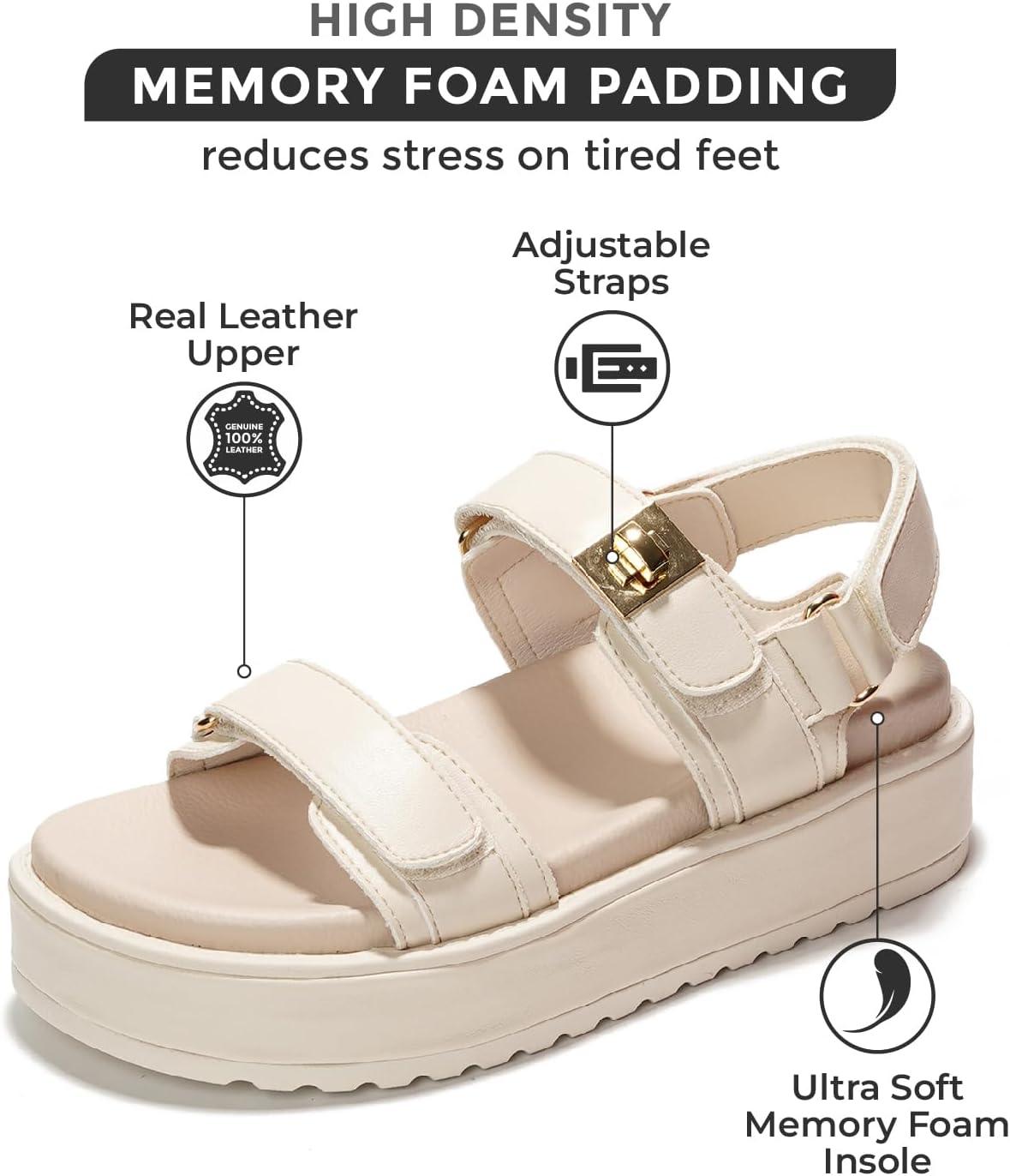 Project Cloud Genuine Leather Platform Sandals Women Footwear - Comfortable and Adjustable Strappy Summer Sandals for Women 2025 - Memory Foam and Non-Slip Slingback Beach Slides(Bone)