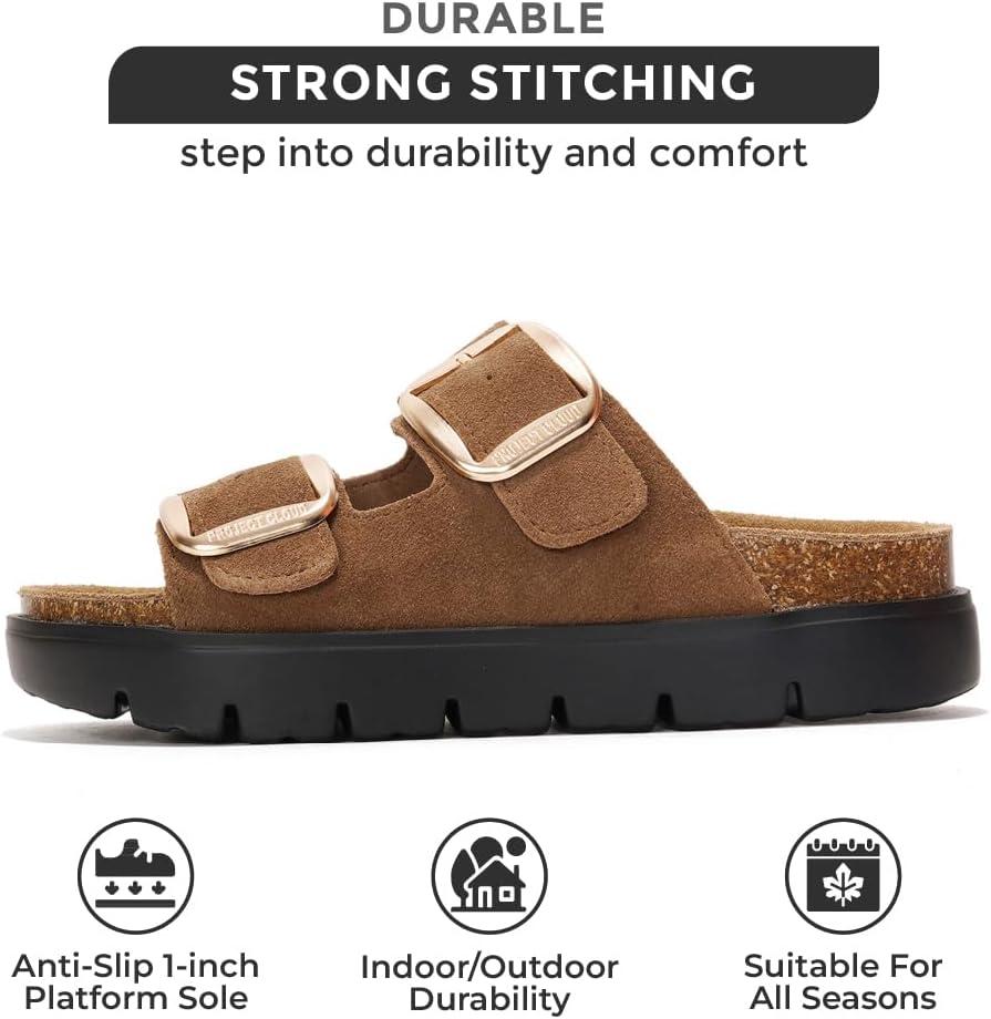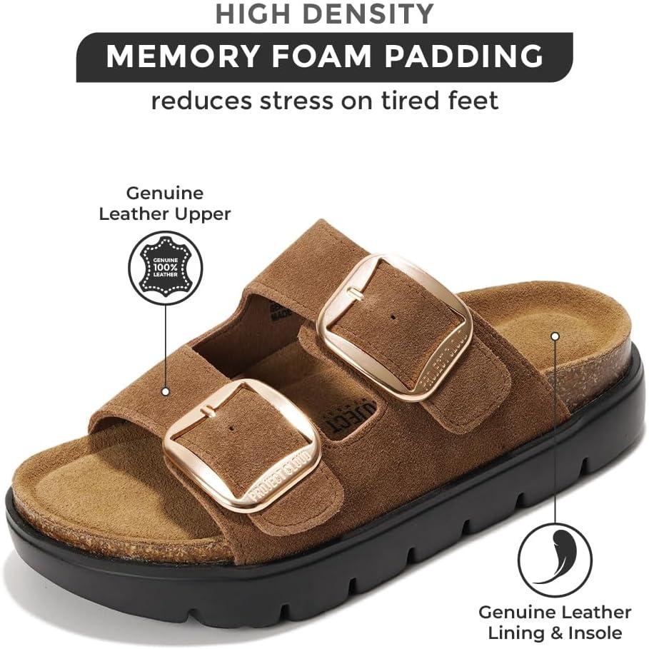 Project Cloud Genuine Leather Platform Sandals Women Footwear – Wedge Chunky Sandals Womens sandals with Memory Foam Insole and Cork Footbed (GREECECHUNKY)(Fosssuede)