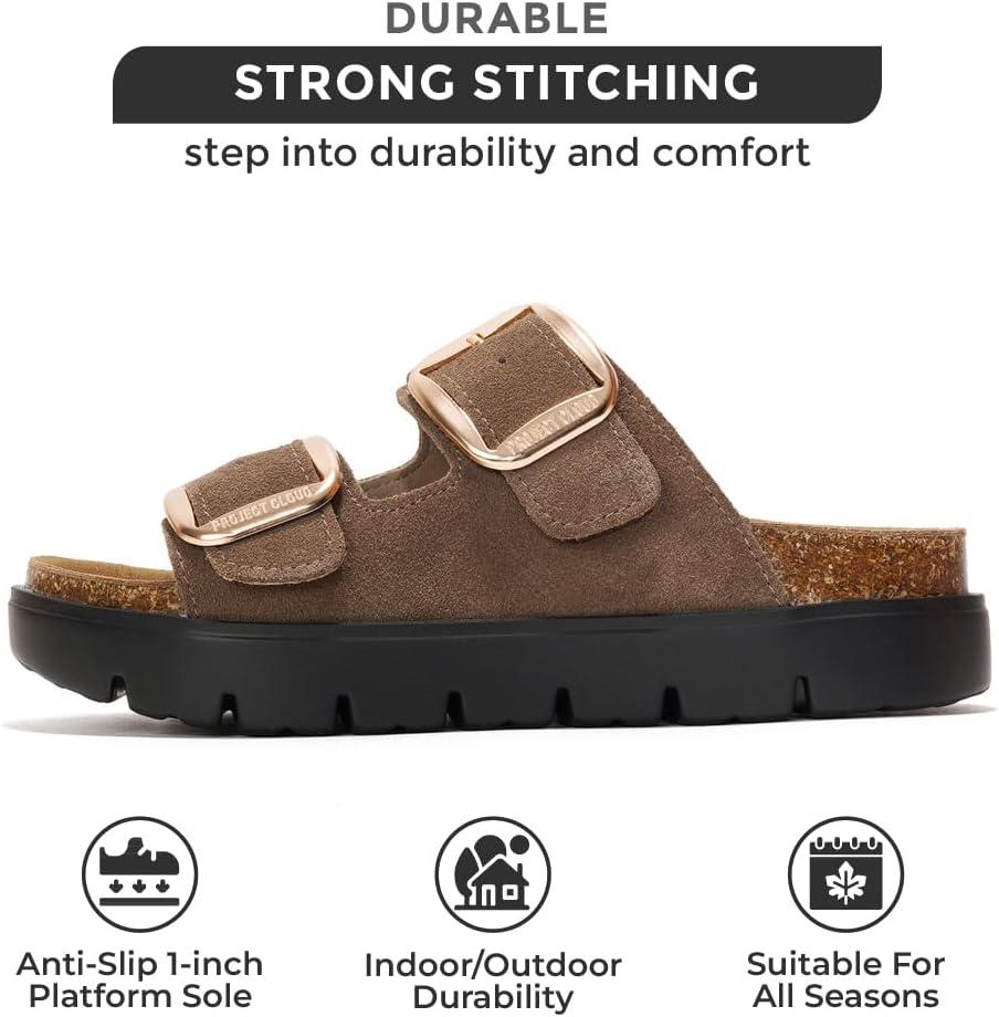 imageProject Cloud Genuine Leather Platform Sandals Women Footwear  Wedge Chunky Sandals Womens sandals with Memory Foam Insole and Cork Footbed GREECECHUNKYFosssuede