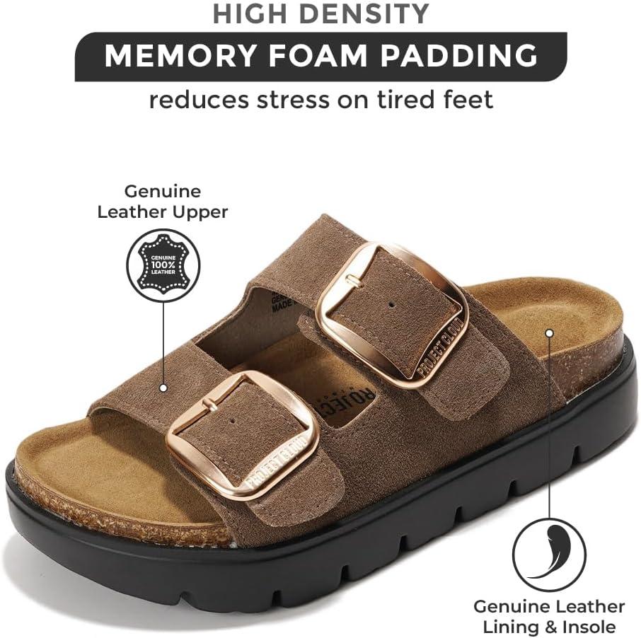 Project Cloud Genuine Leather Platform Sandals Women Footwear - Wedge Chunky Sandals Womens sandals with Memory Foam Insole and Cork Footbed (GREECECHUNKY)(Fosssuede)