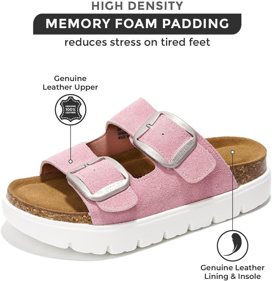 Project Cloud Genuine Leather Platform Sandals Women Footwear - Wedge Chunky Sandals Womens sandals with Memory Foam Insole and Cork Footbed (GREECECHUNKY)(Mauve Suede)