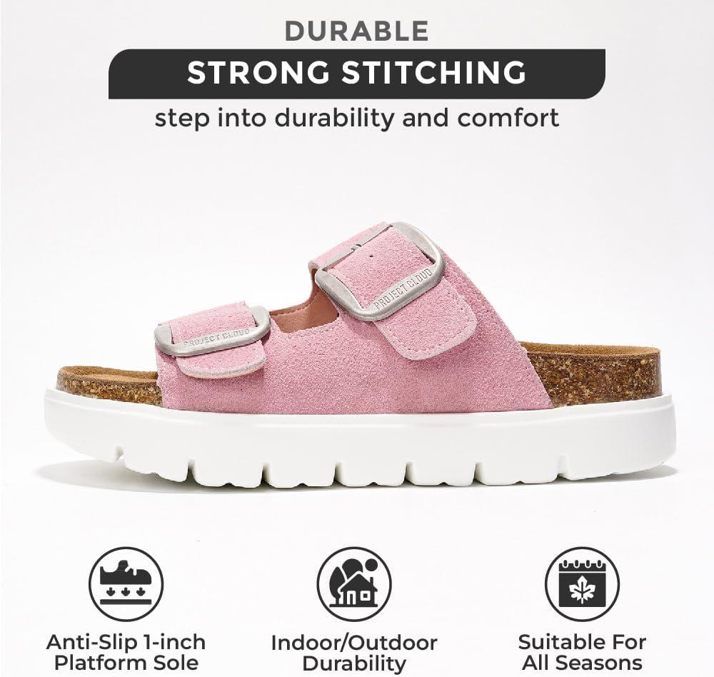 Project Cloud Genuine Leather Platform Sandals Women Footwear – Wedge Chunky Sandals Womens sandals with Memory Foam Insole and Cork Footbed (GREECECHUNKY)(Mauve Suede)