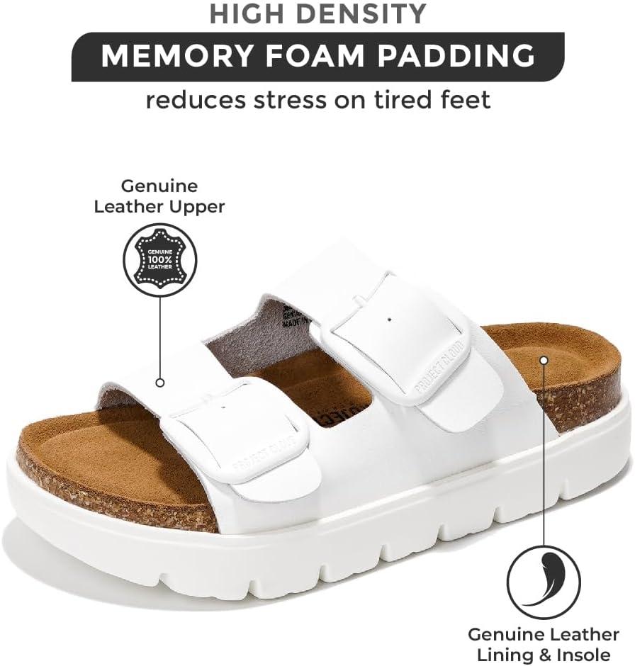 Project Cloud Genuine Leather Platform Sandals Women Footwear - Wedge Chunky Sandals Womens sandals with Memory Foam Insole and Cork Footbed (GREECECHUNKY)(White)