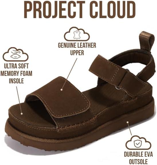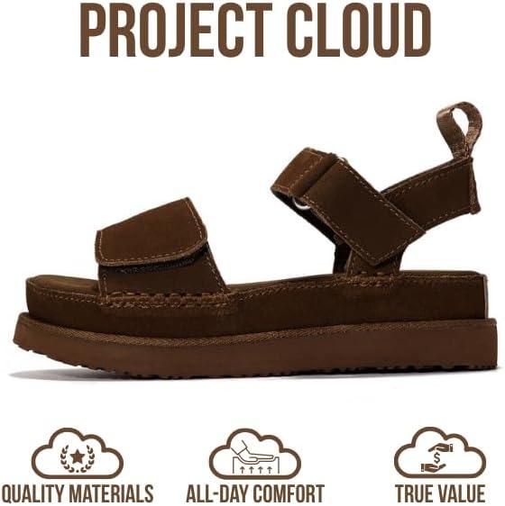 Project Cloud Genuine Leather Platform Sandals Women - Memory Foam Insole Slip Resistant Chunky Womens Sandals with adjustable straps - Stylish Women Footwear (Bronzestar)(Mocha Suede)