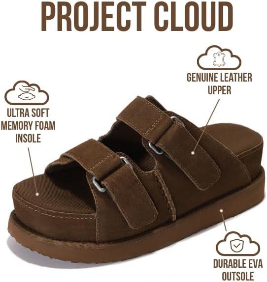 imageProject Cloud Genuine Leather Platform Womens Sandals  DoubleStrap NonSlip Platform Sandals Women with Memory Foam Insole  Chunky Heeled Women Footwear SilverstarMocha Suede