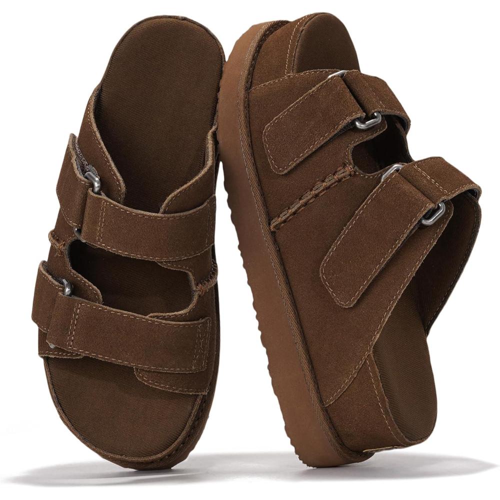 Get the Project Cloud Genuine Leather Platform Womens Sandals – Double-Strap Non-Slip Platform Sandals Women with Memory Foam Insole – Chunky Heeled Women Footwear (Silverstar)(Mocha Suede) you want at a price you can afford with our markdown sale.