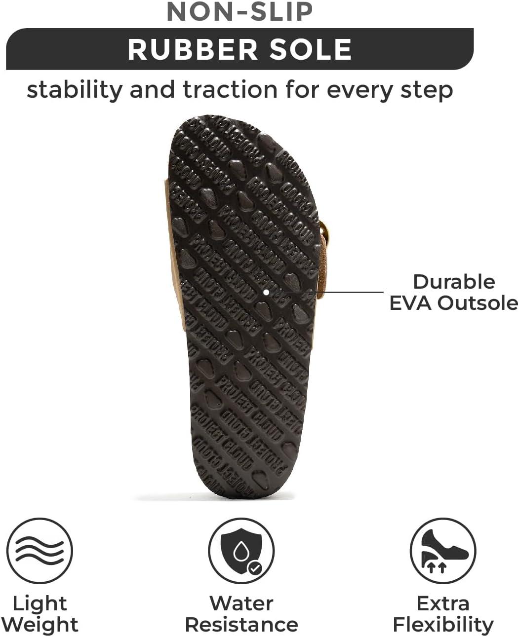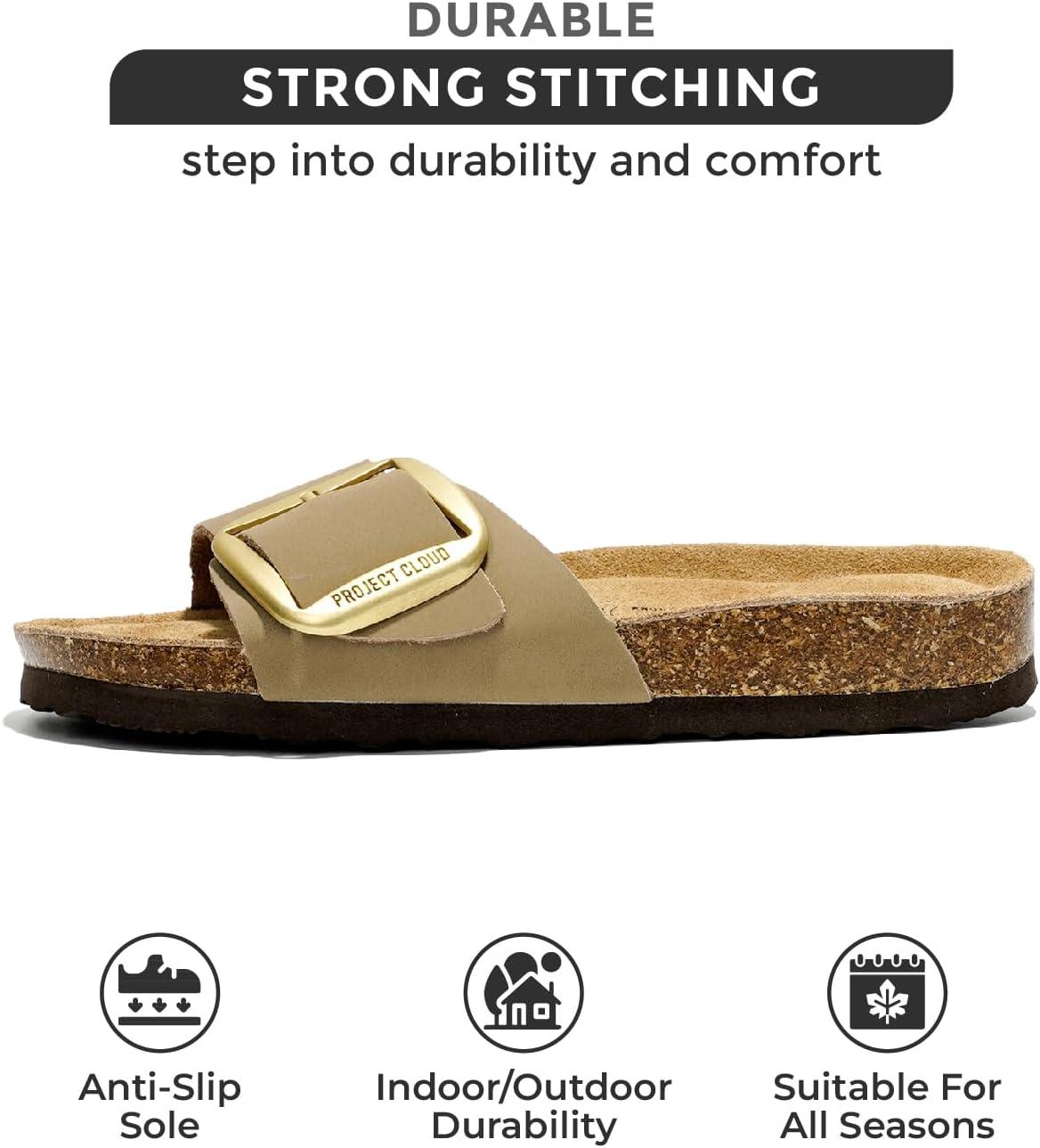 Project Cloud Genuine Leather Sandals Women Dressy Summer Beach Essentials - Flip Flops & Slides with Memory Foam Insole Womens Sandals Comfortable Footwear(Beige-bigger Buckle)