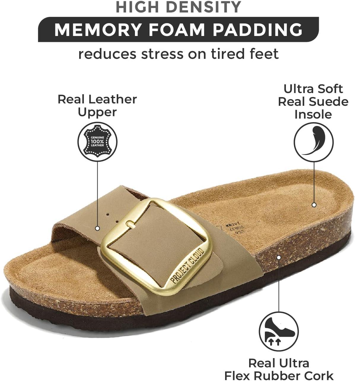 imageProject Cloud Genuine Leather Sandals Women Dressy Summer Beach Essentials  Flip Flops ampamp Slides with Memory Foam Insole Womens Sandals Comfortable FootwearBeigebigger Buckle