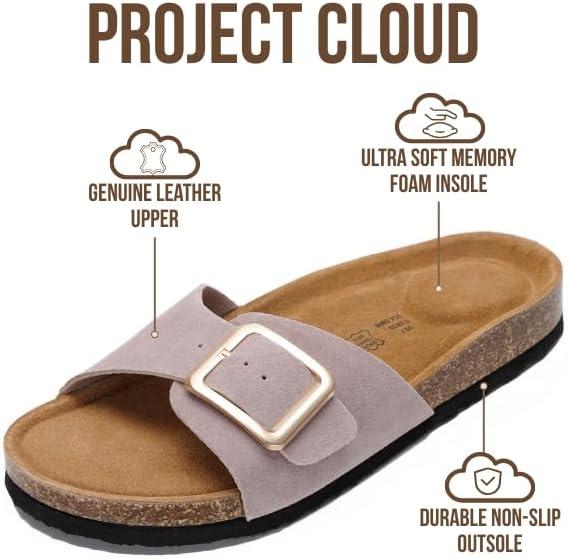 Project Cloud Genuine Leather Sandals Women Dressy Summer Beach Essentials – Flip Flops & Slides with Memory Foam Insole Womens Sandals Comfortable Footwear(Blackmatte-bigger Buckle)