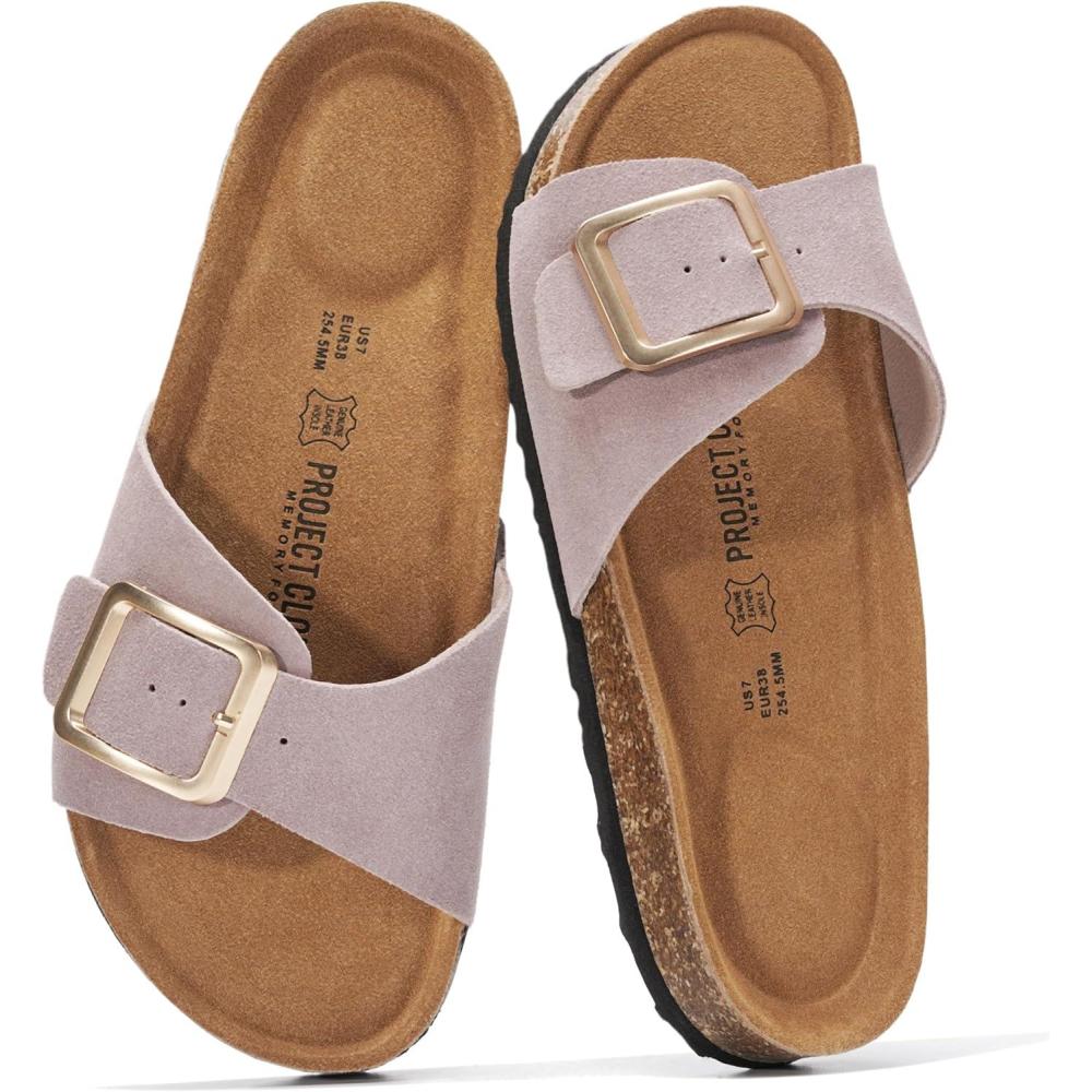 imageProject Cloud Genuine Leather Sandals Women Dressy Summer Beach Essentials  Flip Flops amp Slides with Memory Foam Insole Womens Sandals Comfortable FootwearBlush Suede
